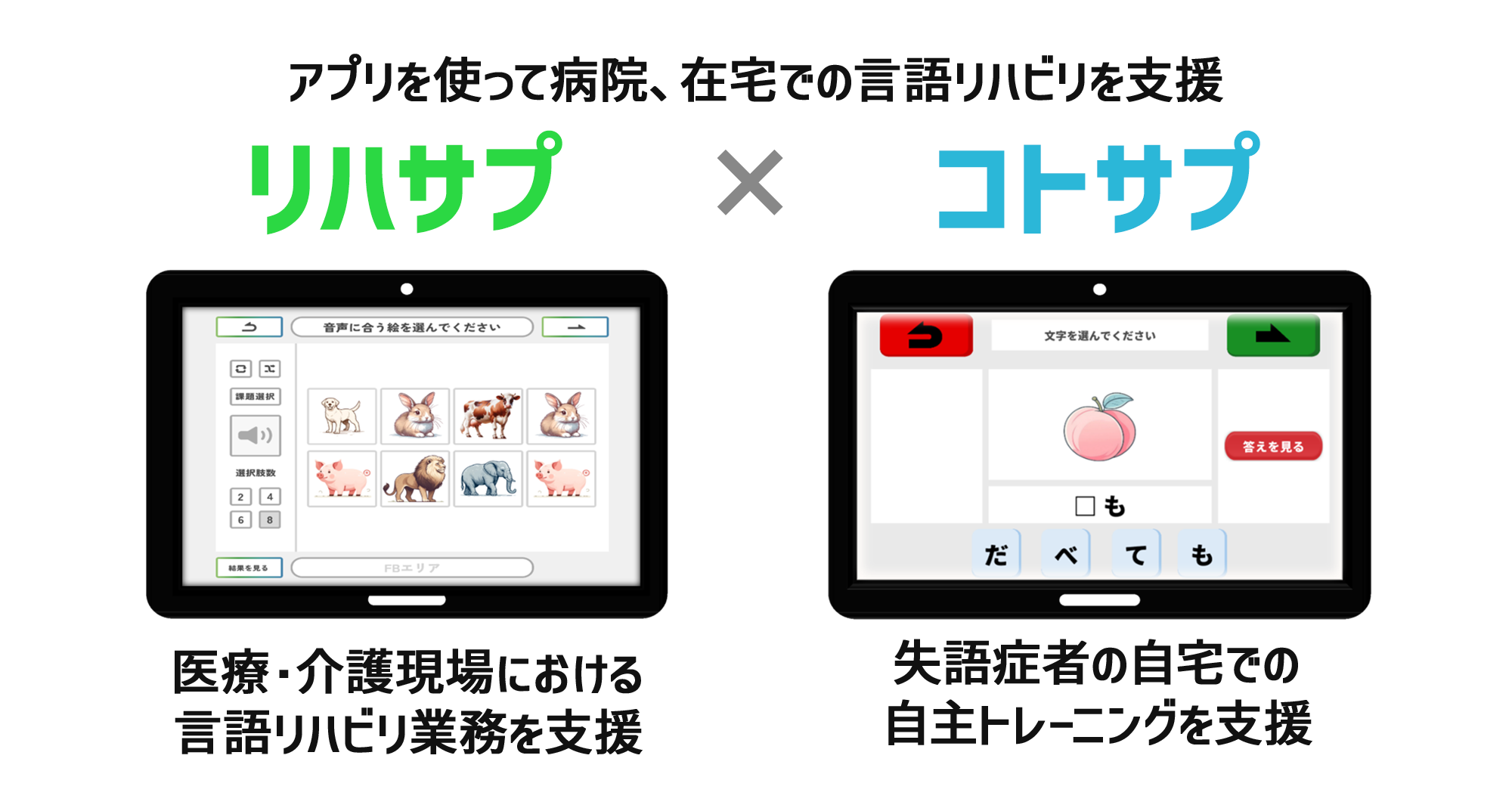 失語症に悩む方々が自宅で安心して言葉のトレーニングに取り組める、在宅向けアプリ「コトサプ」。