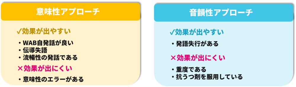 今回は意味性/音韻性の観点で、症状ごとにどのようなアプローチで効果が得やすいかについて考えてきました。