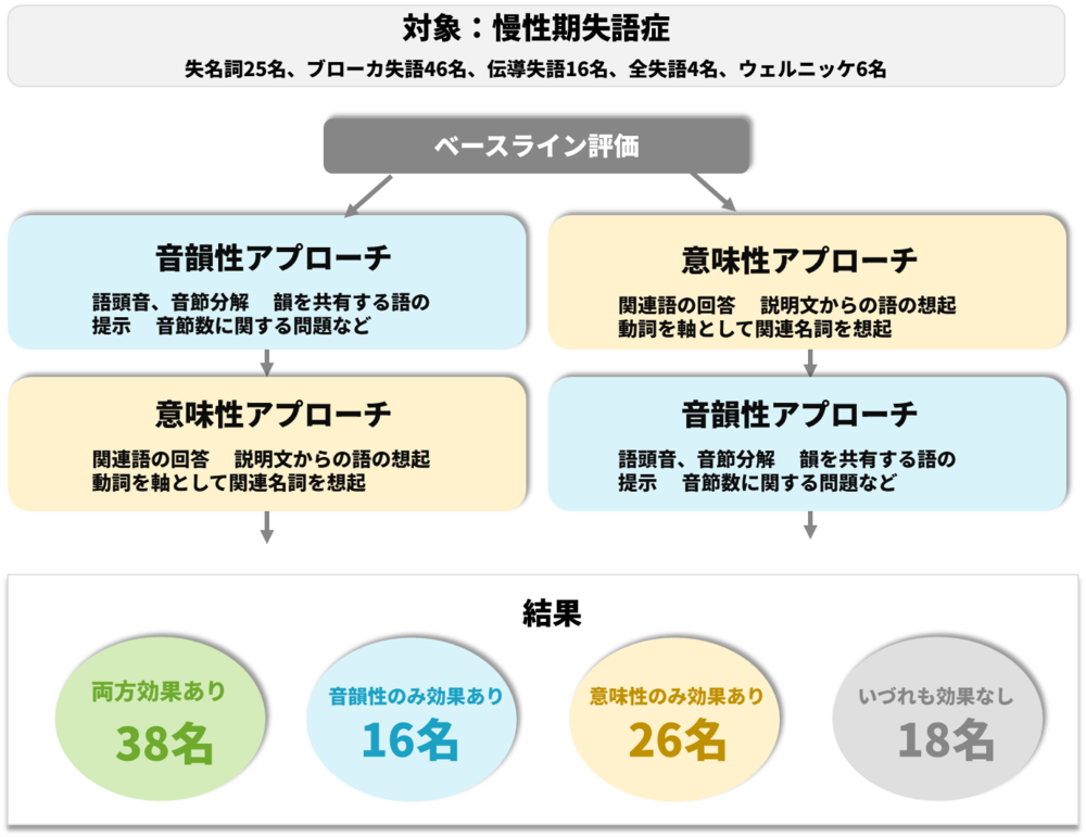 ・概要:「3週間の音韻性アプローチ」と「3週間の意味性アプローチ」を順番に実施。