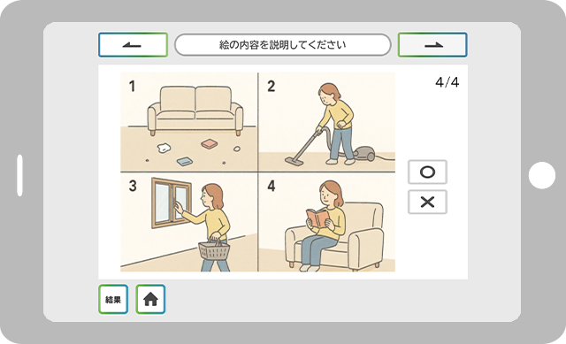 タブレット1台で様々な言語課題を実施できるため、ベッドサイドでのリハビリや移動が多い環境での道具の持ち運びが楽になります。